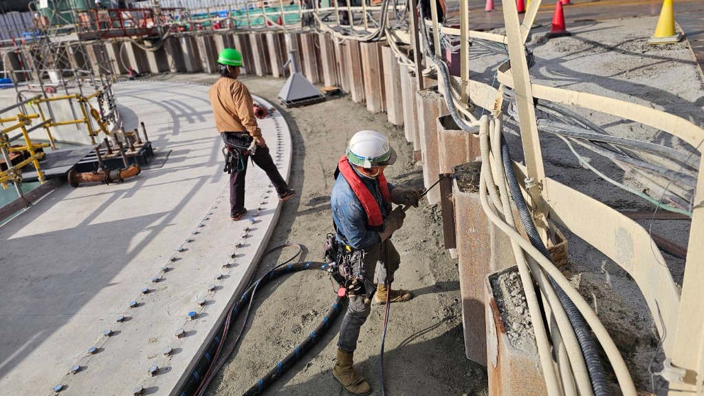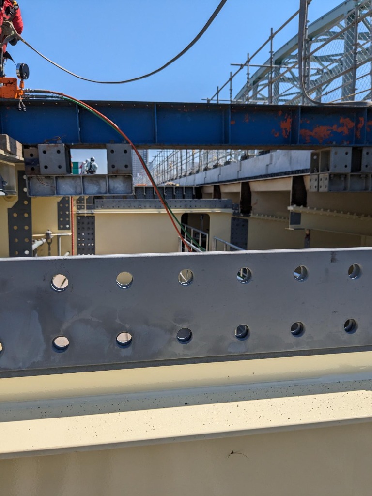 ガス溶断作業を行っています不要なアングルを撤去してます。