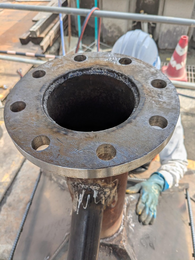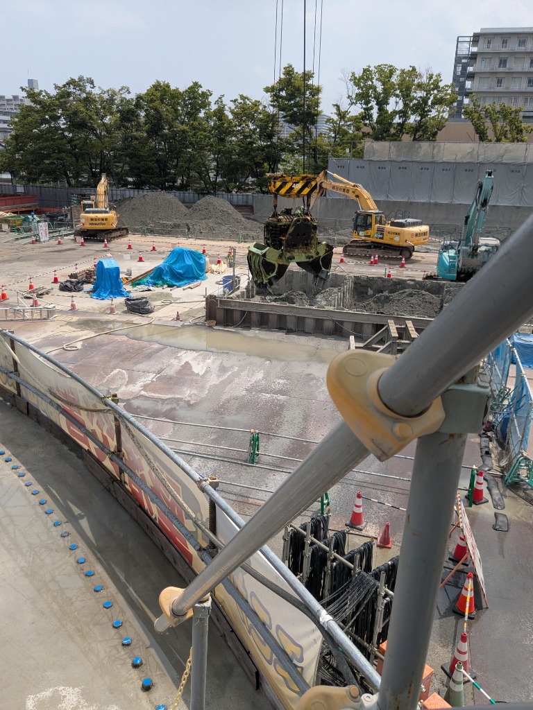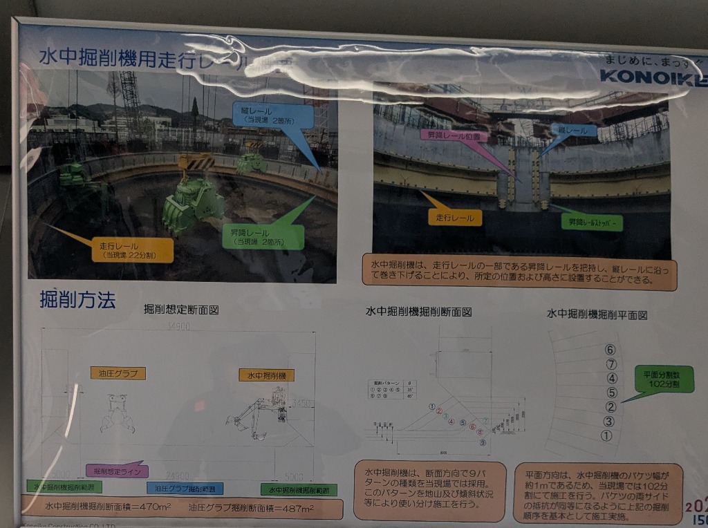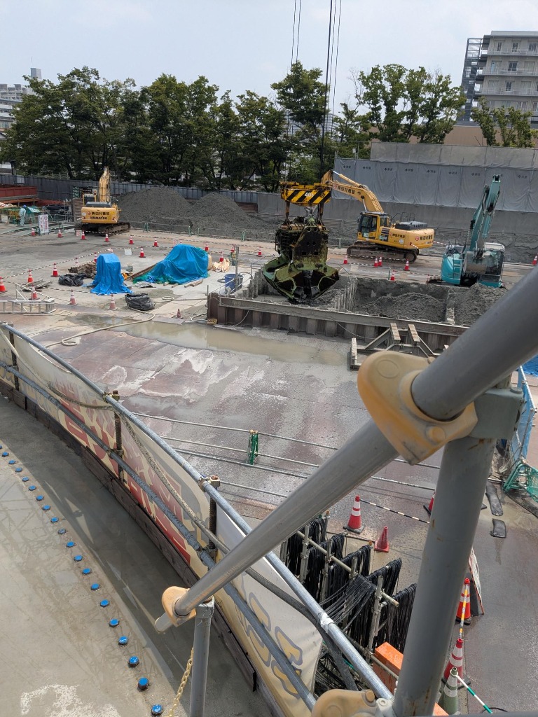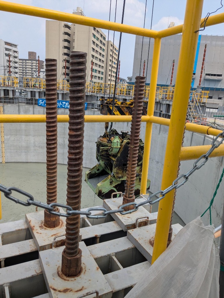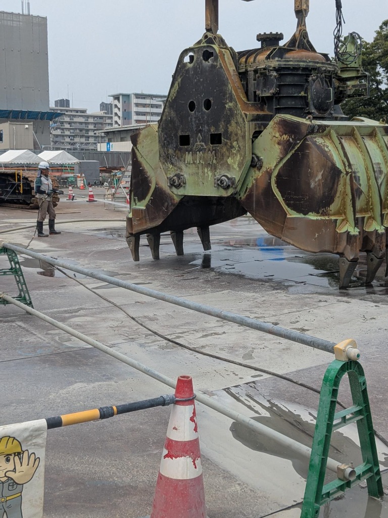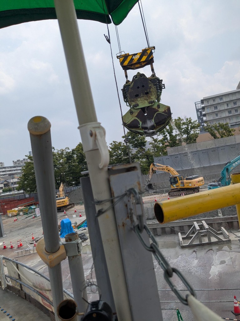 水中掘削機のグラブです。これで約100m掘削圧入を繰り返して沈下しています。